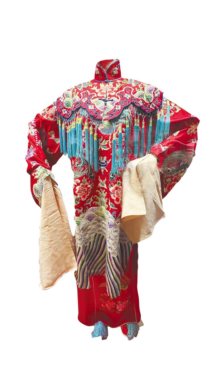 展品中,两件红团女蟒、绣花白帔分别是陈伯华演出《贵妃醉酒》《宇宙锋》等剧目的服装。张志文介绍,这两件戏服都极具代表性,其中红团女蟒遍身绣满凤凰、牡丹,在陈伯华演出的《贵妃醉酒》《状元媒》《宇宙锋》等经典剧目中都有亮相。而绣花白帔则是陈伯华在《宇宙锋》中的独创,这套戏服外罩白纱斜系衣襟,适用于剧中人物赵艳容装疯的场景,京剧、豫剧和汉剧的《宇宙锋》并称“三锋”,只有汉剧采用白帔,京剧、豫剧都是黑色。