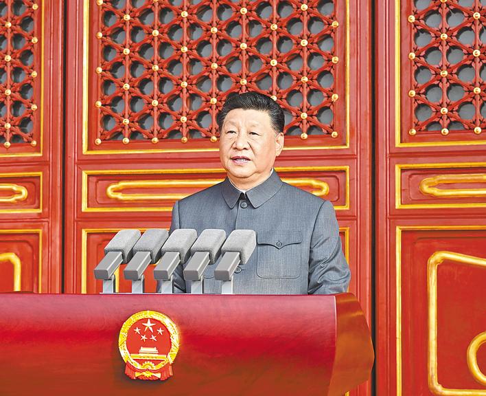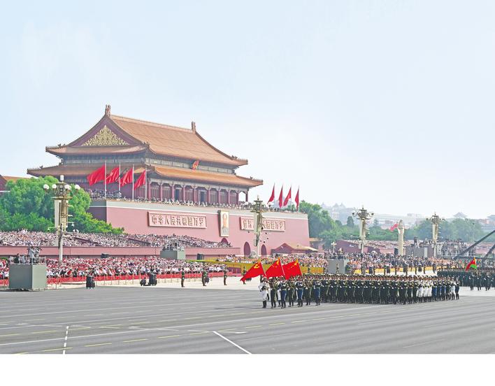 9月3日,纪念中国人民抗日战争暨世界反法西斯战争胜利80周年大会在北京天安门广场隆重举行。中共中央总书记、国家主席、中央军委主席习近平发表重要讲话。(新华社发)