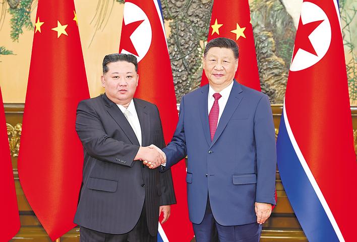 习近平指出,中朝是命运与共、守望相助的好邻居、好朋友、好同志。中朝友谊源远流长,两国都是共产党领导的社会主义国家,有着共同的理想信念和奋斗目标。金正恩总书记来华出席纪念中国人民抗日战争暨世界反法西斯战争胜利80周年活动,体现了朝方维护二战胜利成果的坚定意志,也为中朝两党两国进一步发展友好合作关系提供了重要契机。