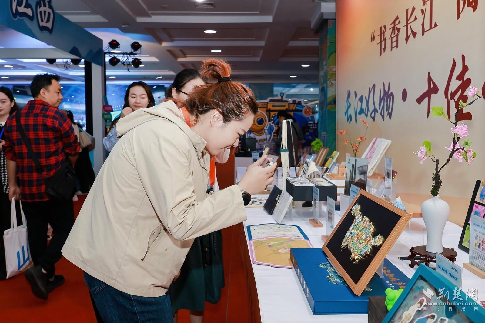 本次武汉书展期间,“长江好物”沉浸式展区成为热门打卡地。展区集中展示八大省馆特色文化产品和大学生大赛获奖作品,手工互动区和VR汉字体验项目吸引众多观众参与。观众可亲手制作文创产品,感受传统手工艺魅力;也能通过VR沉浸式体验汉字演变,领略中华文化博大精深。