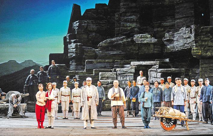 在舞台呈现上,《沂蒙山》创新使用可旋转的巨大山体造型,通过灵活多变的场景转换,既强化了抗战历史的磅礴气势,也使得剧情节奏紧凑、张力十足。