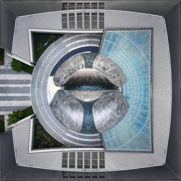 以空中视角聚焦城市建筑之巅——那些形态各异、匠心独运的屋顶。它们既是遮风避雨的实用构件,又是凝固的诗篇、跃动的音符,共同交织出建筑艺术的几何韵律。