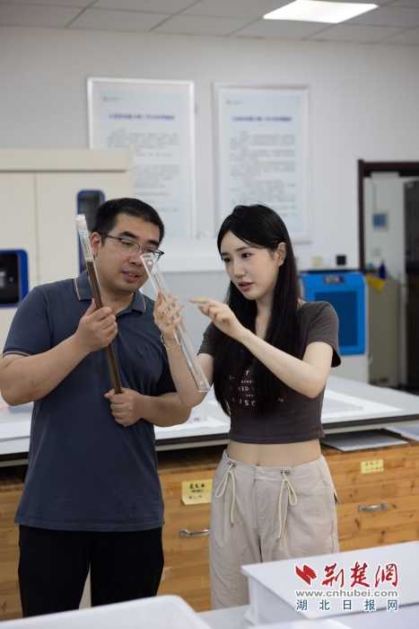 在荆州文物保护中心,阿珉详细了解了竹简、木器漆等珍贵文物的发掘和保存过程