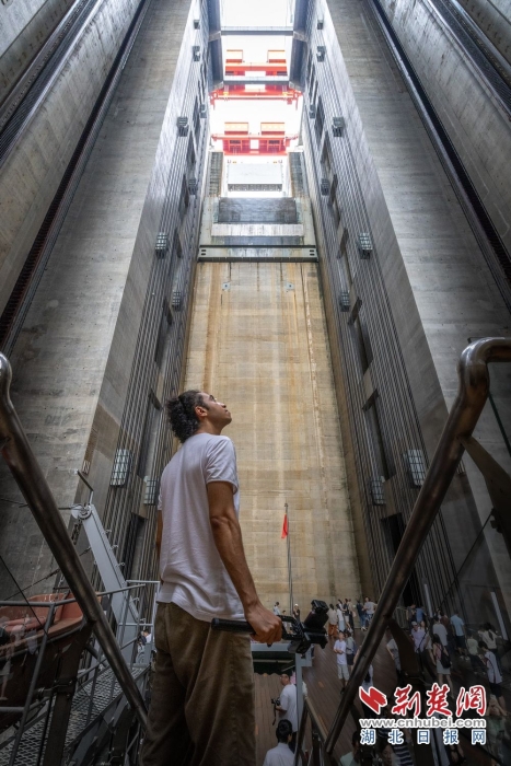 在宜昌,埃及青年颜渊第一次体验三峡升船机