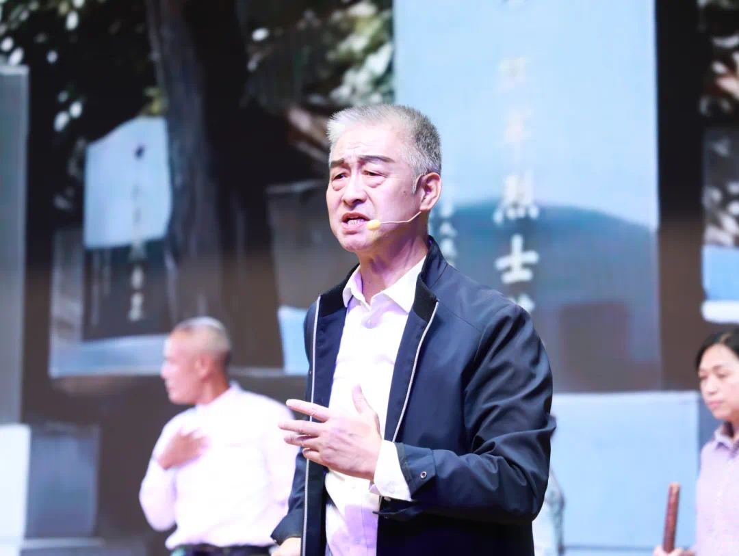 全国道德模范提名奖、“中国好人”姜能山的故事以情景剧《“英烈守护人”姜能山》呈现,从20岁栽下14棵扁柏树立下誓言,到87岁仍坚持义务守墓、为无名烈士寻亲,一家三代接力守护红军墓的60余载,让台下观众深刻读懂“万众一心、紧跟党走”的老区精神。