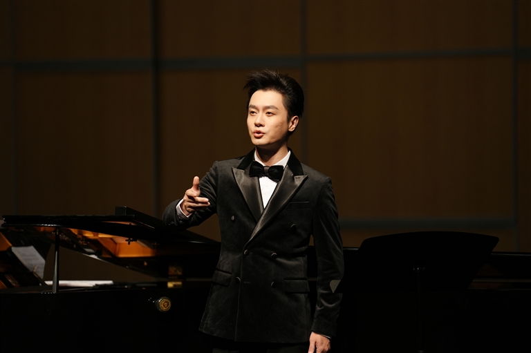 音乐会以一首《越人歌》拉开序幕,赵越富有磁性的嗓音与钢琴家尹伯洁默契配合,将观众带入悠远的意境中。随后,《念奴娇·赤壁怀古》《幽兰操》等古诗词艺术歌曲轮番上演,展现了赵越深厚的艺术功底和对传统文化的深刻诠释。