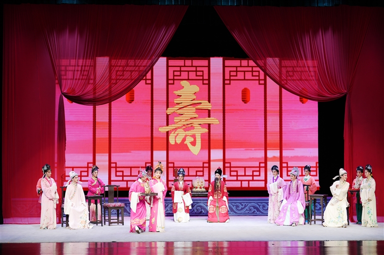 10月2日,压轴大戏《五女拜寿》精彩上演。该剧由顾锡东创作,以明代嘉靖年间为背景,讲述户部侍郎杨继康寿宴上的人情冷暖与家族变迁。寿宴上,四位亲生女儿争相拜寿,义女杨三春与清贫书生邹应龙受冷落愤然离去。不久,杨继康遭官场风波,被罢官抄家,昔日亲情化为冷漠,唯有侍女翠芸不离不弃。最终,邹应龙智斗权臣,助杨继康官复原职,势利小人受惩,真心孝顺者得圆满。
