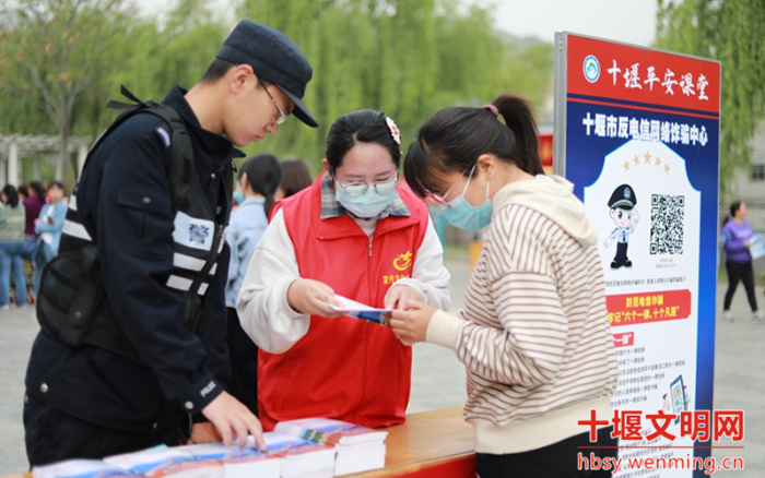 郧阳区白浪镇文明实践活动现场,志愿者向群众宣讲反电诈知识。