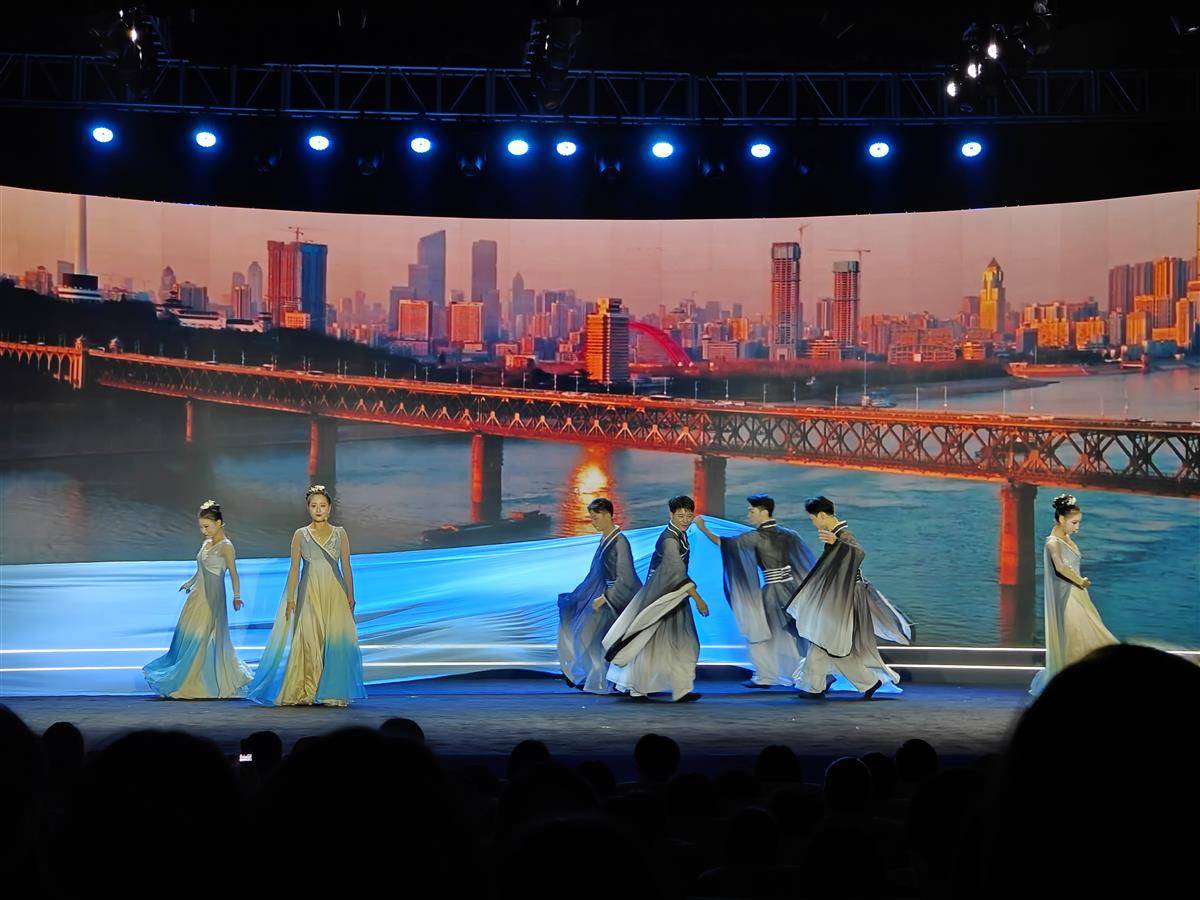 本次晚会以“青春江河·文耀荆楚”为主题,打破文学盛典活动的仪式化框架,通过音诗乐舞、情景演绎、影像灯光等多元艺术形式,融合科技与艺术,呈现了一场文学与青春交相辉映的视听盛宴。