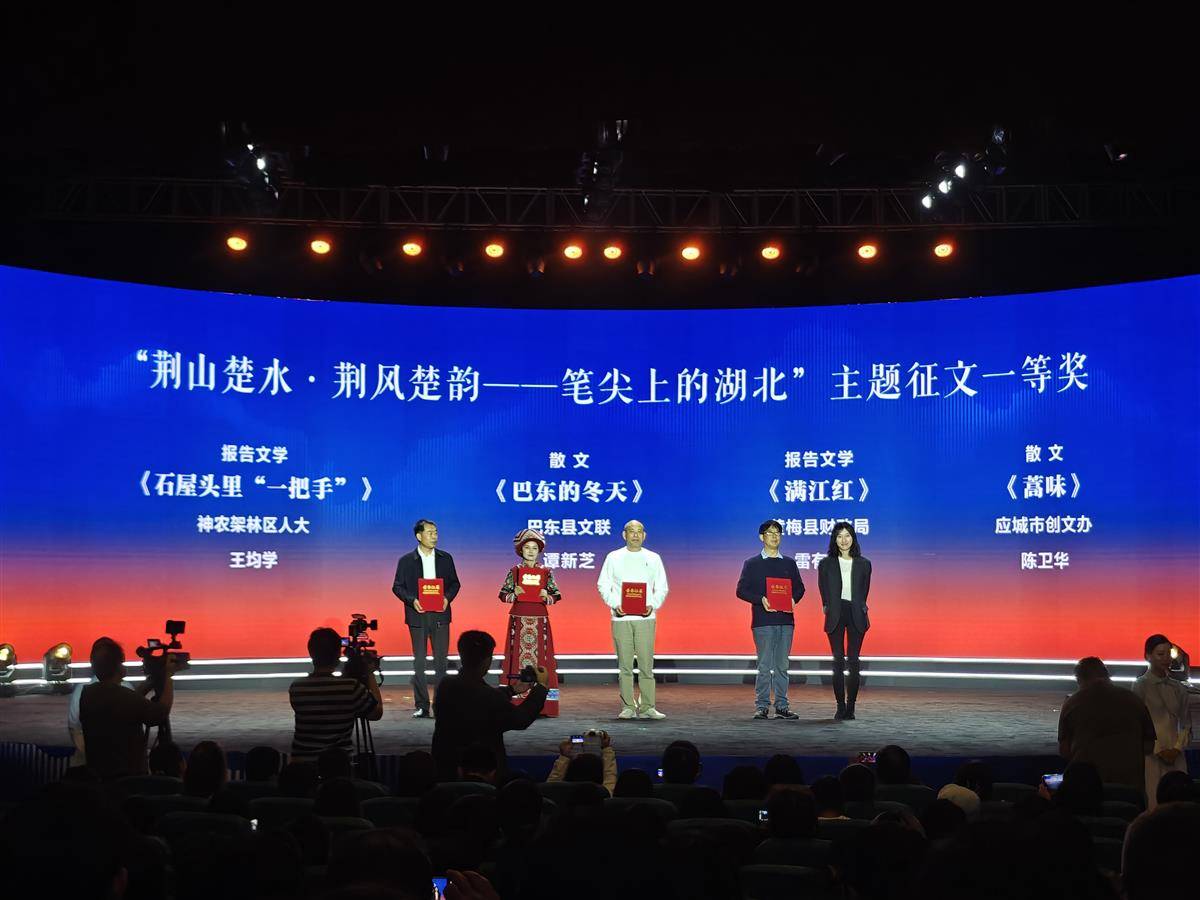由湖北省作家协会主办的“荆山楚水•荆风楚韵——笔尖上的湖北”主题征文活动自启动以来,吸引全国文学爱好者踊跃参与,共收到投稿1842篇,经专家严格评审,最终评出一等奖4名、二等奖10名、三等奖20名、优秀奖50名。作品体裁广泛、风格多样,涵盖生态文明、乡村振兴、城市记忆、文化传承等多个领域,生动书写新时代的荆楚故事与人民心声。