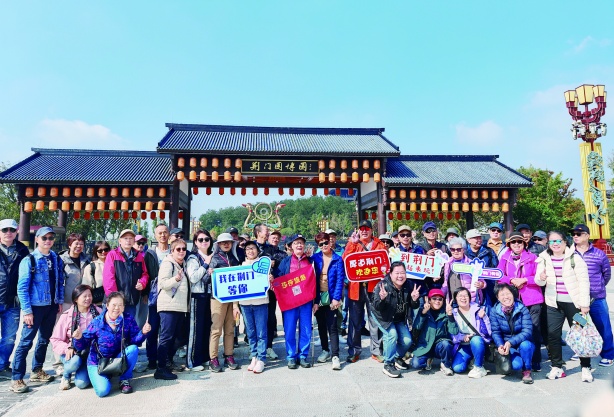 香港游客在荆门园博园合影留念。易荣荣 摄