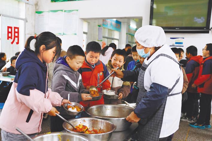 南漳县教育局局长罗强介绍,该县共有64所提供食堂供餐的学校,目前413名厨房从业人员中,有159名为学生家长,越来越多的学生在学校食堂吃出了“妈妈的味道”。(文/图 湖北日报全媒记者 祝兆林 通讯员 李友国 龚良杰)
