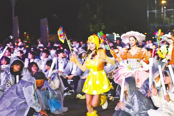10月16日晚,在黄石慈湖未苏湾举办的“知音湖北·超级文旅日17遇金秋”活动主会场,演员们与观众热情互动。(黄石市文旅局供图)