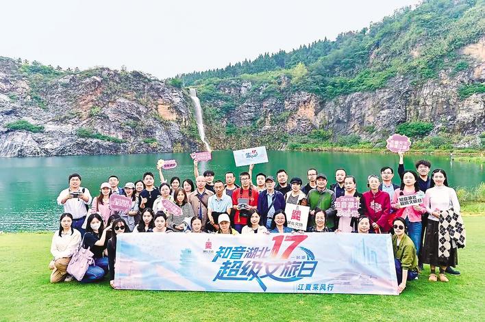 “超级文旅日”期间,旅游达人来到武汉江夏灵山生态文化旅游区采风。(省文旅厅供图)