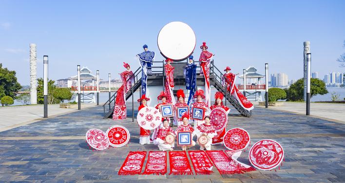10月22日,嘉鱼县二乔环湖公园广场,来自县内“艺剪中心”的八位非遗剪纸传承人和身着剪纸华服的模特,在雄风台上演时装秀,为重阳佳节注入文化新意。(湖北日报农村版记者 彭翠楠 通讯员 雷平 庞建琴 摄)