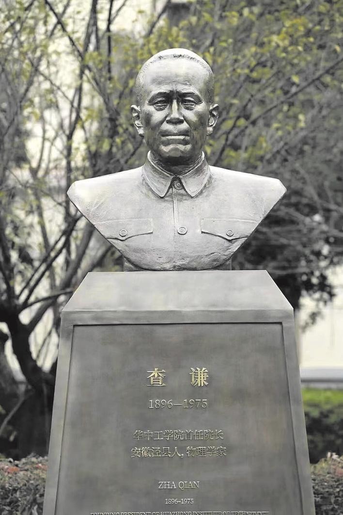 查谦的半身雕像坐落在该校西七舍前,基座正面用中英文铭刻着:“查谦(1896—1975),华中工学院首任院长,安徽泾县人,物理学家”。