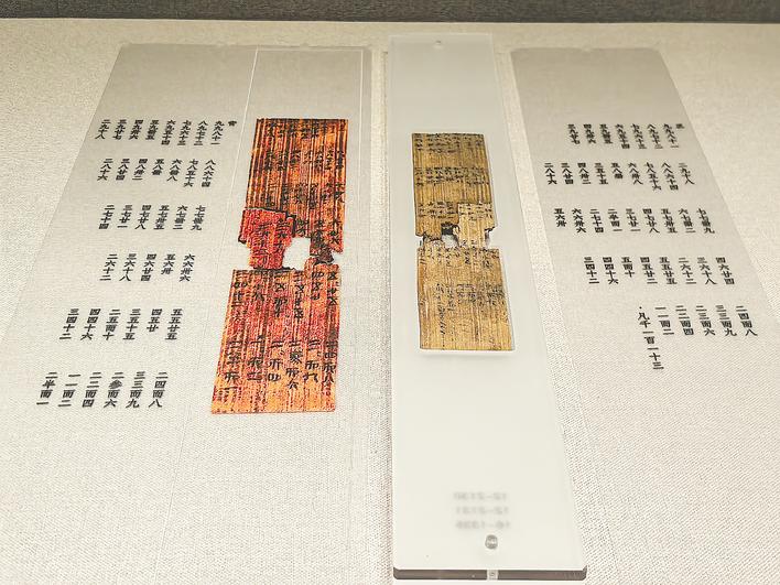 曾侯乙墓战国早期竹简、睡虎地秦简、里耶秦简、居延汉简、敦煌汉简、走马楼三国吴简、武威旱滩坡晋简……展览以简牍的演进为线索,展现战国至东晋近千年间简牍作为主流书写载体的漫长历程。展出简牍包罗万象、立体丰富,既有治国经纬、法律体系、典籍佚篇、西域故事,更有展现人间烟火的社会百态。