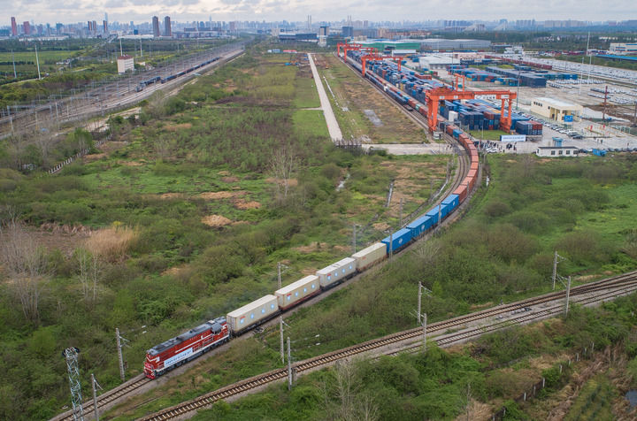 开往德国杜伊斯堡的中欧(武汉)班列从中铁联集武汉(吴家山)中心站驶出。新华社记者肖艺九摄