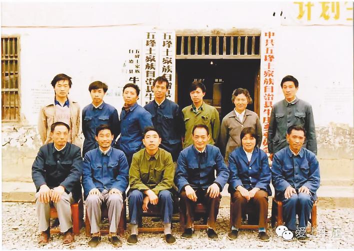 罗官章(前排左三)早年和乡亲们合影。(受访者供图)