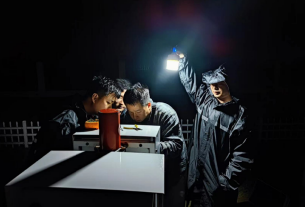 荆门市气象局打造“风云天使护万家”党建品牌,为保障气象数据的采集和传输,连夜抢修沙洋国家基本气象站。李鑫 摄