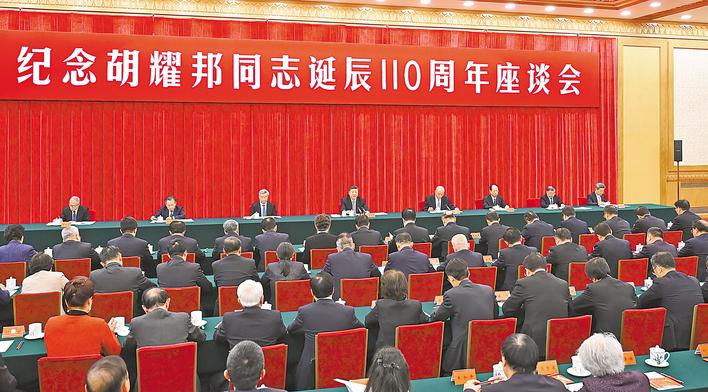 新华社北京11月20日电 中共中央20日上午在人民大会堂举行座谈会,纪念胡耀邦同志诞辰110周年。中共中央总书记、国家主席、中央军委主席习近平发表重要讲话强调,要认真学习胡耀邦同志的崇高精神风范和优良作风,不忘初心、牢记使命,坚定历史自信,增强历史主动,以一往无前的奋斗姿态扎实推进各项事业。
