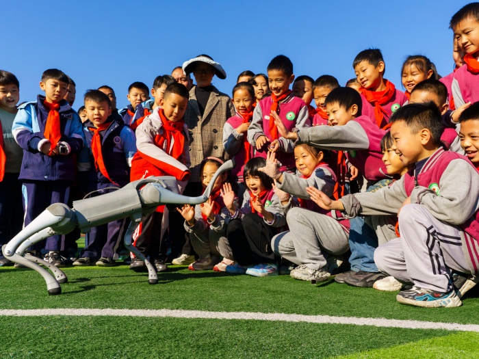 县科协科普大篷车同步进驻校园,带来多样互动科普展品。多台智能机器人随着音乐节奏舞动,手臂灵活摆动、机身精准旋转;机器狗憨态可掬,在工作人员指令下精准完成“坐下”“握手”“转圈”等动作;孩子们围在台前睁大眼睛,踮脚探头,不时抬手欢呼鼓掌,满脸惊喜与兴奋,久久不愿挪步。