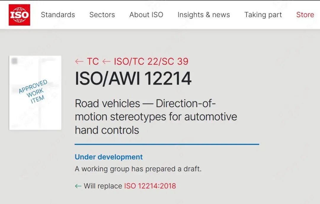 ISO 12214是关于车辆手操作件常规运动方向的国际标准。现在汽车操作件越来越电动化、智能化,原来的技术要求急需新。该标准在国内的版本为GB/T 43382-2023,东风汽车作为主要参与单位,在国标转化过程中,充分结合中国国情对该标准进行了修订。