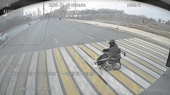 “没想到自己一个小小举动还得到老人的挥手致谢,真是特别温暖。”回忆起12月9日下午的暖心一幕,武汉公交289路驾驶员彭梦凡依然难掩心中的暖意。当日16时04分,在武汉腾龙大道大沙咀的斑马线路口,面对变绿的通行信号灯,彭梦凡果断停车护送坐在轮椅上的老人,老人挥手以示谢意。这场冬日里的温暖互动全程被公交车载监控完整记录下来。