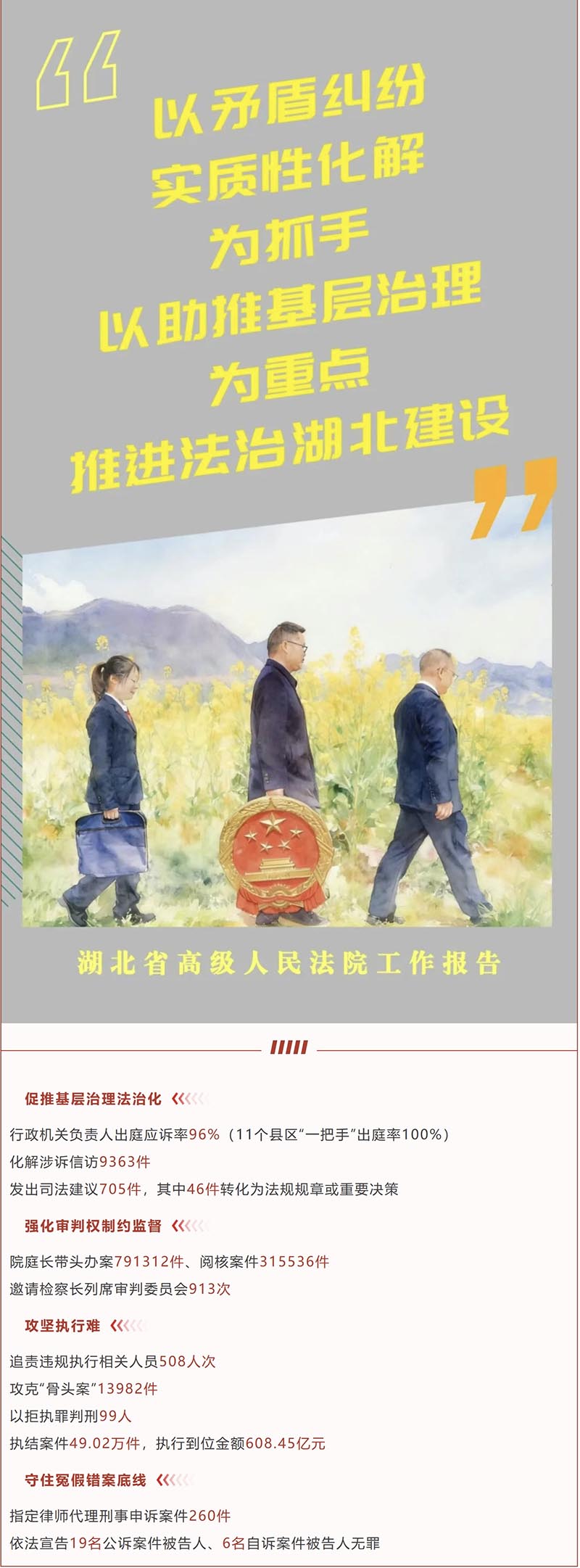 1月28日,湖北省高级人民法院党组书记、院长游劝荣在湖北省第十四届人民代表大会第四次会议上作法院工作报告。游劝荣从持之以恒优化法制化营商环境、全力维护安全稳定、坚定不移推进长江司法保护、坚持人民至上民生为大、推进法制湖北建设、坚持强基固本、全面从严管党治警、践行全过程人民民主等方面,对过去一年湖北法院工作进行全面回顾和总结。(连迅、李晓笛、李佩熹)