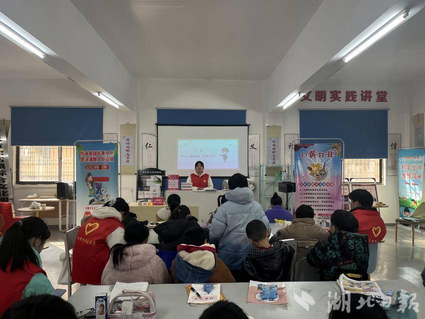 广水街道中山社区新时代文明实践站将禁毒宣传融入课堂,志愿者借助图文PPT,用通俗易懂的语言和小故事,讲解毒品种类、伪装术及新型毒品危害,还设置互动问答,引导孩子们踊跃抢答,加深对禁毒知识的理解。