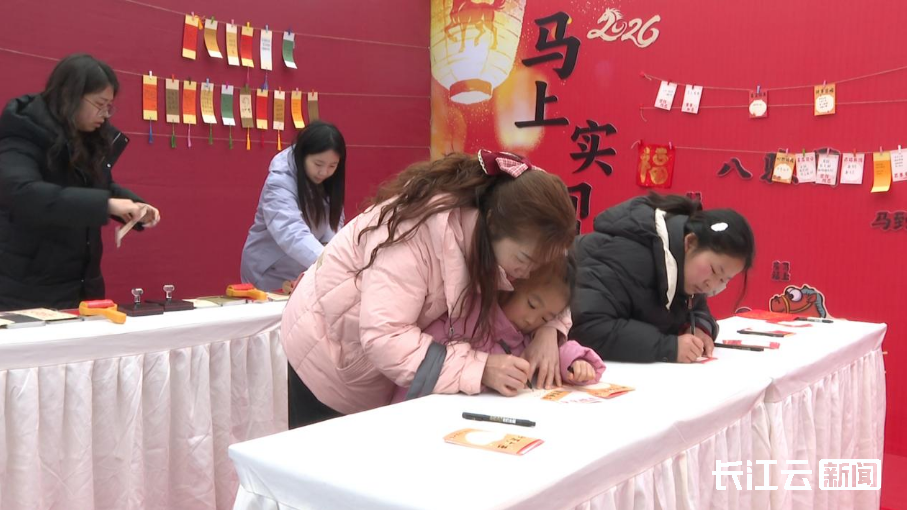 一旁的“巧手拓福”体验区,刘春艳和女儿一起拓印“福”字、写“福”卡,墨香与笑声交织成最美的年味。
