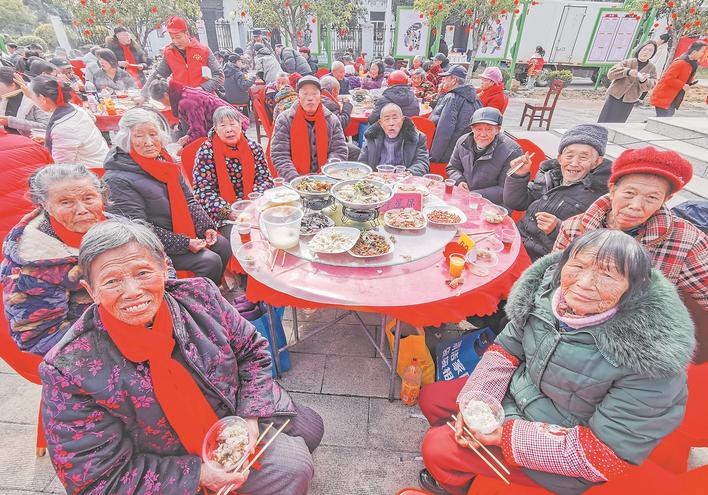 这顿暖心家宴的背后,是双垱村集体经济的坚实支撑。曾经,村里负债160多万元,如今,村“两委”依托糯稻种植特色产业,开办村集体酒厂,2025年村集体创收达107万元。“日子好了,就要让全体村民共享发展成果,守住孝老爱亲的好乡风。”村党总支书记汤庚说。