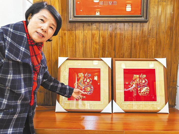 2月10日下午,位于武汉市江汉区新华路的王子怡汉绣工作室里,两幅装裱好的汉绣作品《龙马精神》,正等待被顾客取走。