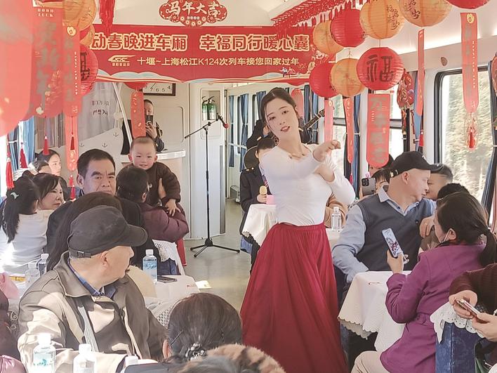 “小年一到,年味儿就浓了!”2月11日,农历腊月二十四南方小年,上午11时58分,十堰开往上海松江的K124次列车10号车厢内座无虚席,一场由武汉铁路局多单位联合打造的“流动的列车春晚”正式启幕,用欢歌笑语为返乡旅客驱散旅途疲惫,送上丙午马年的新春祝福。