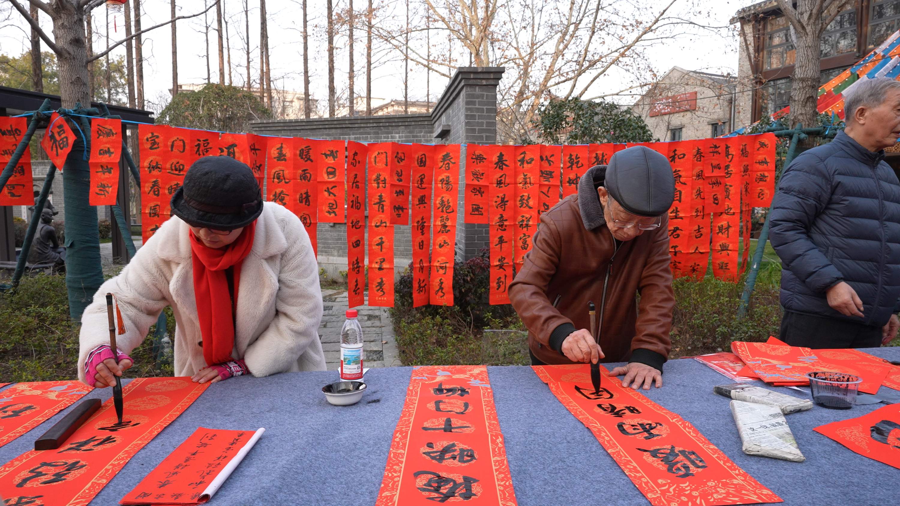 花园广场上,书法家和爱好者们正挥毫泼墨,一副副春联、一个个“福”字传递着新春祝愿。随着天色渐暗,街区的盏盏灯火依次点亮,斗级营瞬间笼罩在温暖光影之中,传统建筑与现代灯饰交相辉映,为新岁注满仪式感,也照亮了归家人的团圆路。