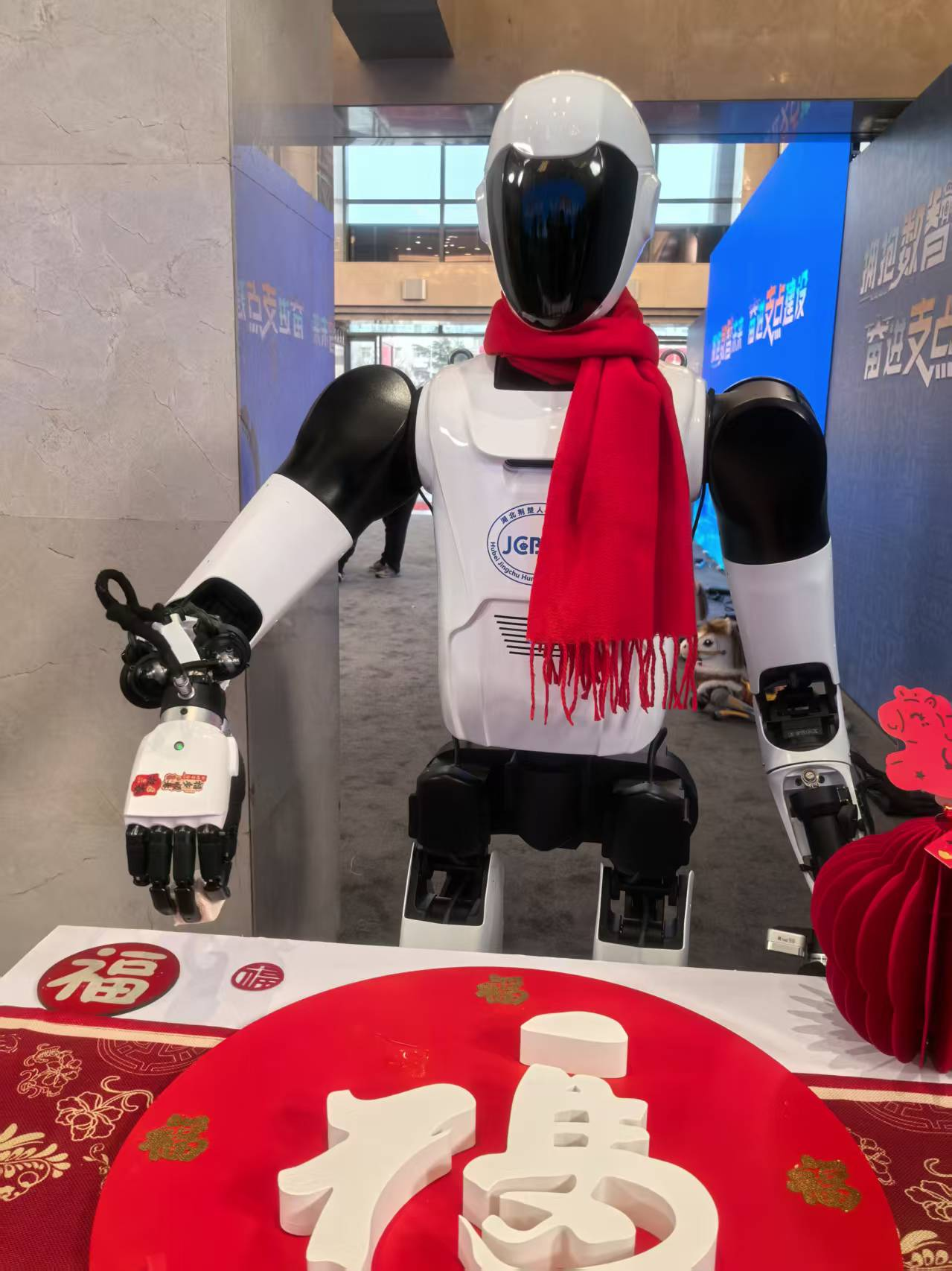 它们在现场翩翩起舞,动作流畅舒展,与小朋友配合默契,用灵动的姿态展现了湖北人形机器人的技术实力。
