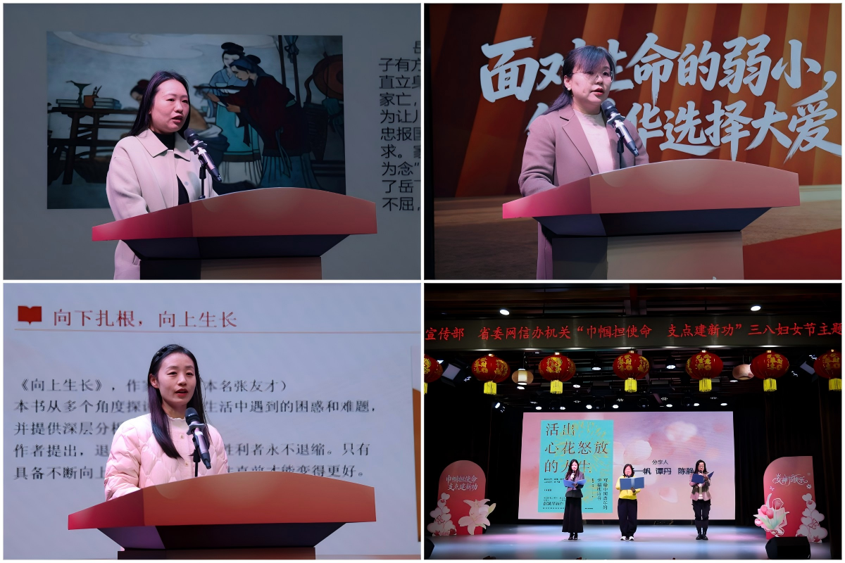 活动精心设置家风故事与读书分享环节,多位同志轮番登台倾情分享。文艺处杨美分享了自己从岳飞的家风故事中汲取的奋进力量;文改处李慧以《身如苔花绽芳华 巾帼传承荆楚魂》为题,从荆楚巾帼事迹中诠释自强不息的时代内涵;省宣传事业发展中心杨一帆、省记协秘书处谭丹、省委讲师团陈静共同带来读书分享《活出心花怒放的人生》;省委网信办网络安全应急指挥中心王奥欣结合《向上生长》一书,分享了实现自我成长的心得感悟。
