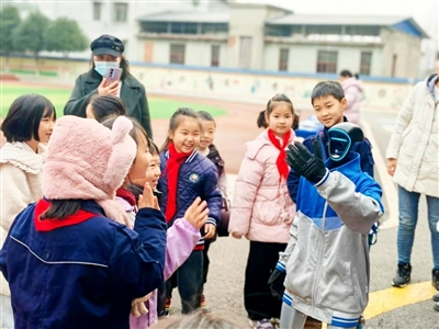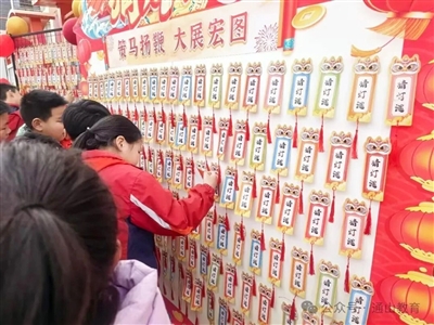 赤壁市实验小学想了个点子——“福气之旅”。校门口立起一面红彤彤的福气墙,宝箱里藏着几百个福袋。孩子们排队抽取,互相炫耀“手气”,校园里笑声不断。