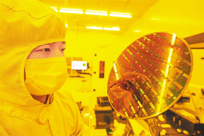 九峰山实验室,科研人员正在检查芯片晶圆完整性。(湖北日报全媒记者 魏铼 摄)
