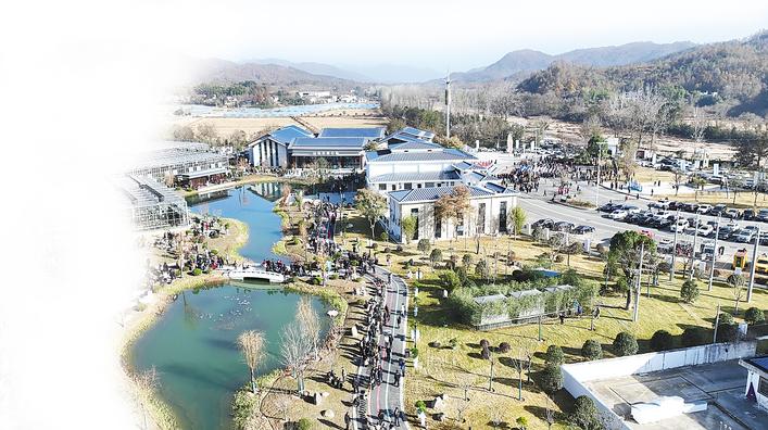 画廊起笔处,一片白墙黛瓦的建筑群就嵌在山脚。走近,小桥流水,芳香四溢,这里便是落成不久的大别山兰花产业园。
