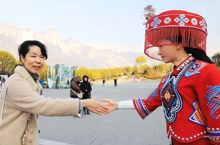 智能互动科技为景区增添趣味与温度。人形机器人导游“小青”可智能语音交互、讲解土家文化、表演摆手舞等,成为中外游客的“网红玩伴”;伴游机器狗机动灵活,可负重搬运行李、萌趣互动,让登山旅途充满欢声笑语。2026马年新春,景区推出机械萌马迎宾、无人机“福从天降”等科技互动活动,吸引众多游客,刷新春节游客接待记录,登顶同城抖音热点榜单。