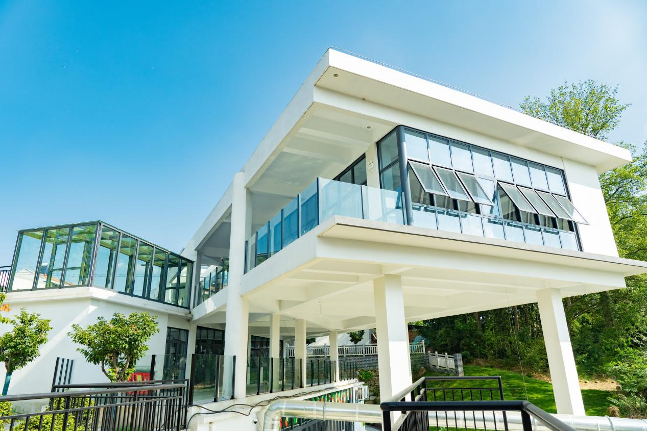 距离咖啡馆不远处,一块“湖北乡村电竞第一村”的招牌已经挂起,一座现代化建筑在青山绿水的映衬下格外醒目,这里是正在建设的武汉首个乡村电竞综合体。