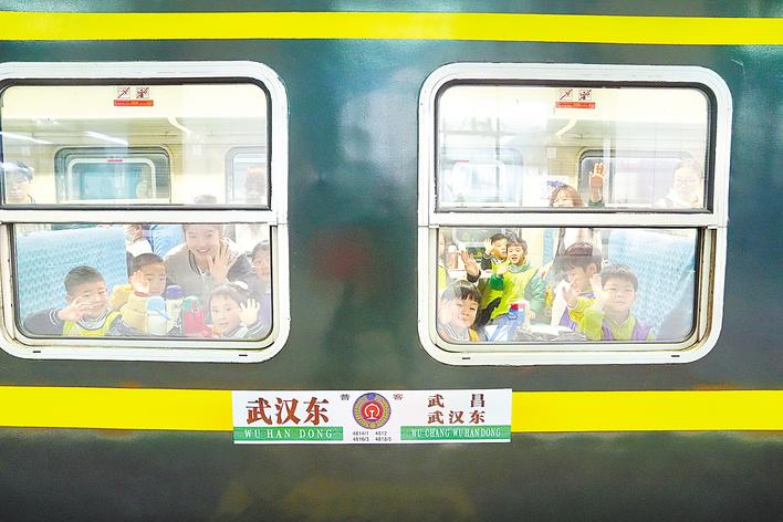 “6元”火车不仅有游客,而且吸引了研学团。3月24日,4818次列车从武昌站驶出,载着7所幼儿园共752名师生的研学团体,开启了“武昌至武昌”普速环线之旅。这是该环线开通后迎来的首批大型研学团队。