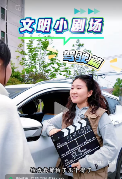 为让文明理念可感可触,江陵创新推出“AI+文明小剧场”。依托数字技术,将“江小文”“陵小明”IP形象与人偶实景演绎相结合,聚焦垃圾分类、文明出行、邻里和睦、移风易俗等日常场景。通过自编自导自演,方言小品、快板说唱、网言网语轮番登场,把抽象的文明规范转化为生活故事。截至今年4月中旬,线上线下已累计开展活动二十余场,覆盖群众万余人次。一位参与过的社区居民说:“以前觉得创文是干部的事,现在发现是我们自己的事。”