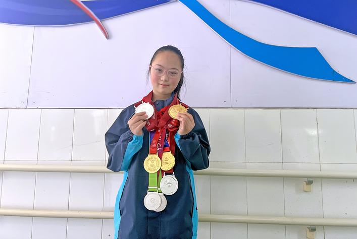 2024年7月,陕西西安,全国特奥乒乓球比赛上,赵雯玥一路过关斩将,强势夺得女子12-15岁组单打、混合双打两枚金牌,创下襄阳在该项赛事中的历史最佳战绩。2025年12月,香港第九届全国残特奥会,她再获佳绩,拿下单打银牌、女子双打金牌,男女混双银牌。从颠球不稳的“小白”,到叱咤赛场的“多金王”,她用坚持与拼搏,活成了自己的光。