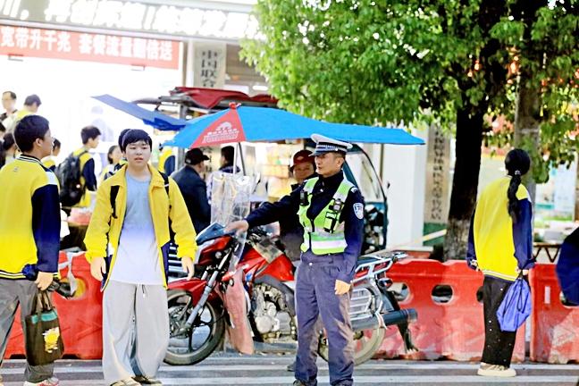 4月20日傍晚六点半,通山县实验中学门口车流涌动、人声鼎沸。护学交警老范像往常一样,挺立在斑马线旁,哨声清脆、手势标准,护送3300名学生安全离校。老范全名范东升,今年56岁的老范,在一线坚守20年,守护这方校园平安,已是第七个春秋。