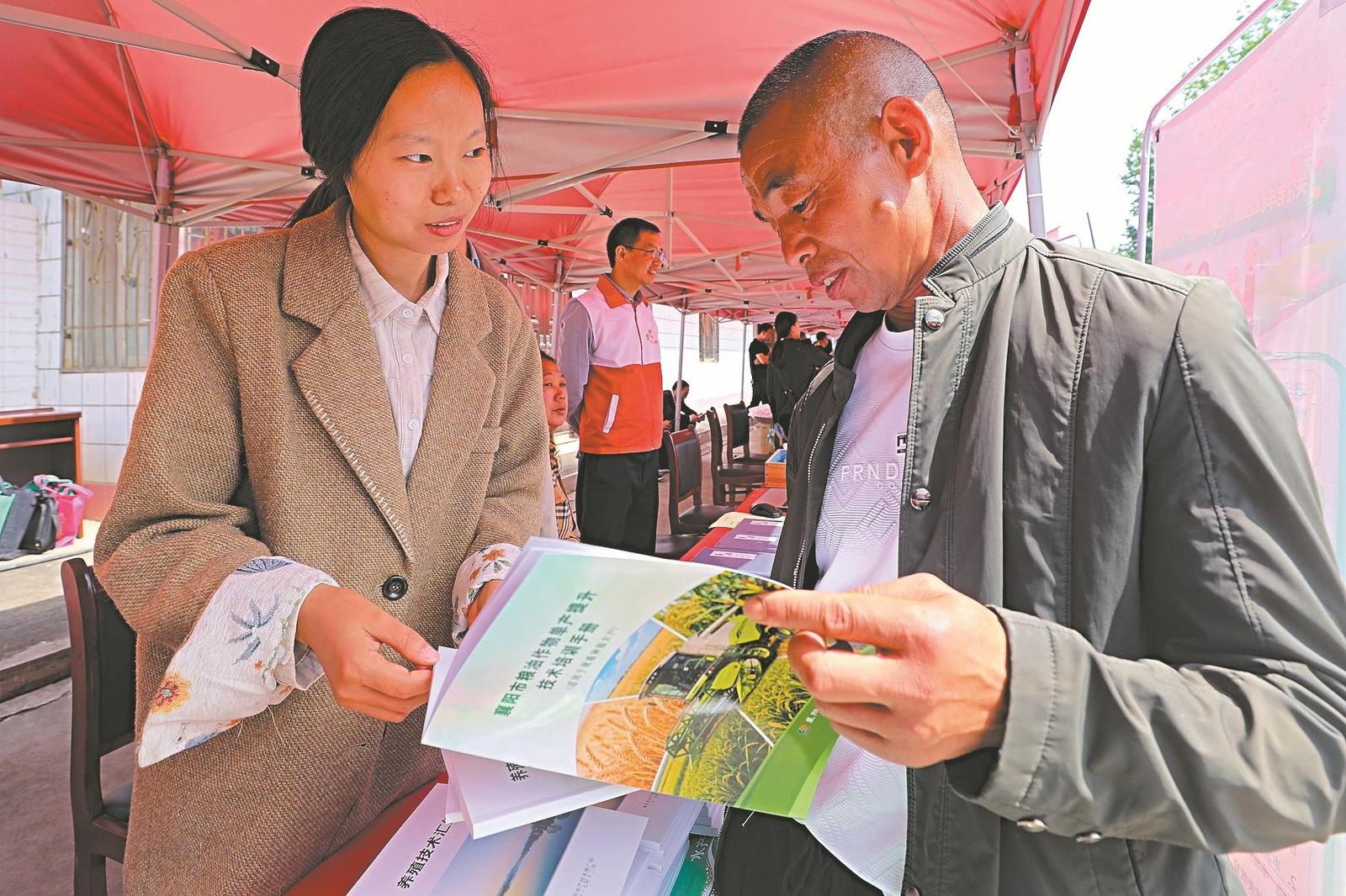 工作人员在现场为农民发放种植养殖技术资料。记者 吴肖 杨洋 摄
