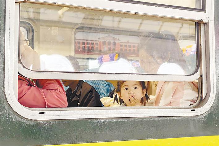 市民乘绿皮火车游览江城。 (湖北日报全媒记者 陈少哲 摄)