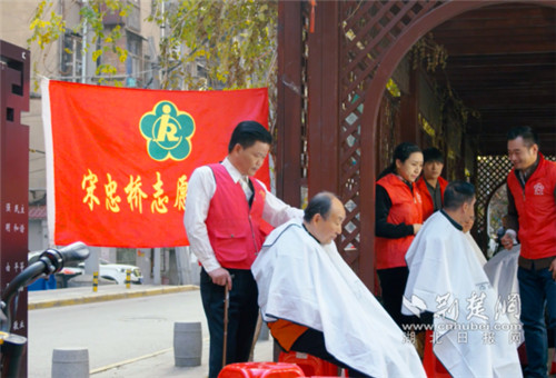 宋忠桥志愿服务队经常做义务理发。 微电影截图