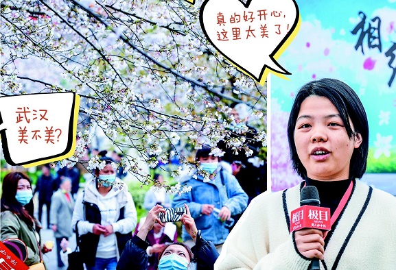 来自河南郑州的企业家张先生表示,去年因为疫情没能到武汉欣赏樱花,今年春暖花开,有幸在东湖欣赏美丽的樱花,春风扑面而来,令人如痴如醉,感受到了武汉的生机勃勃。